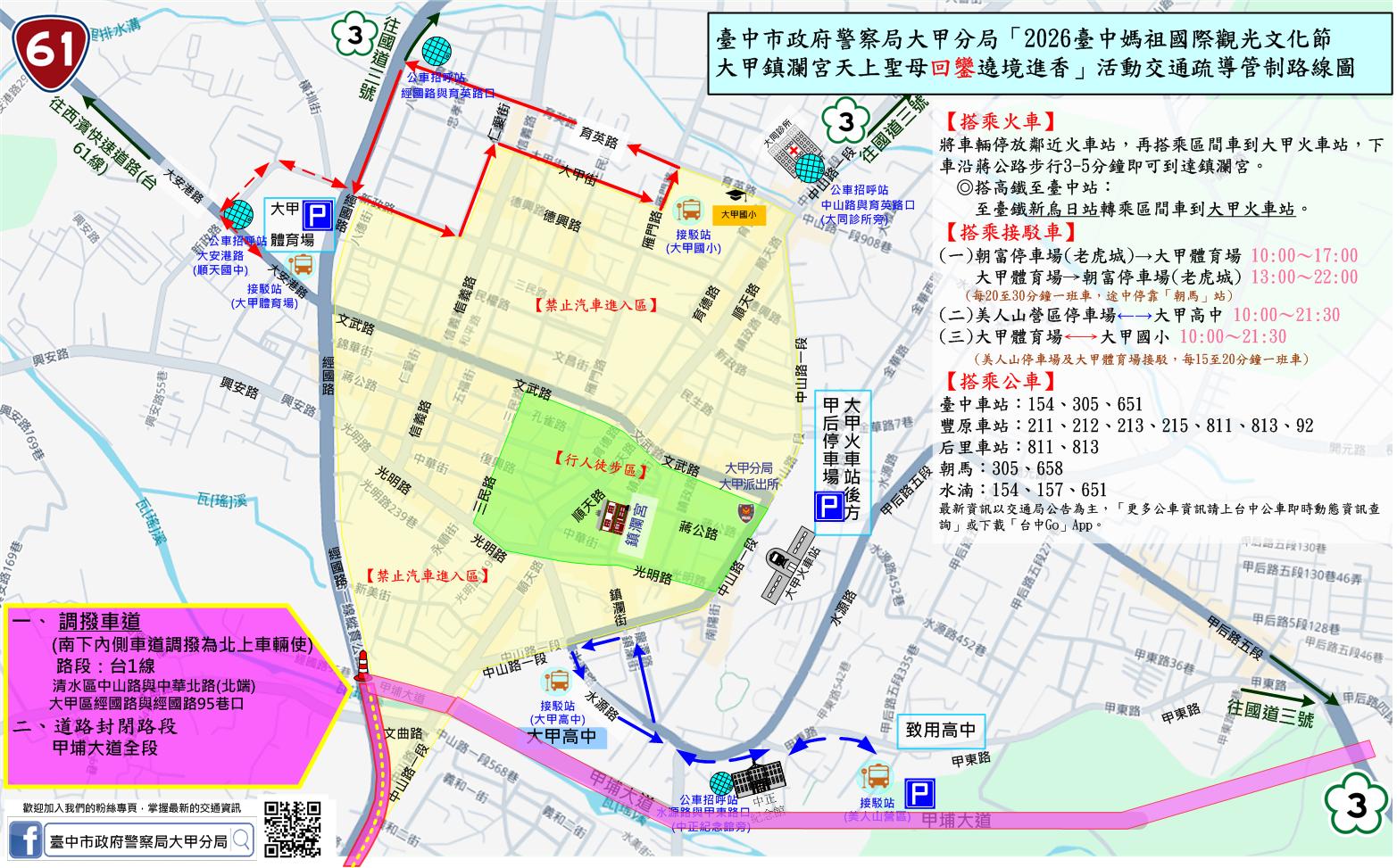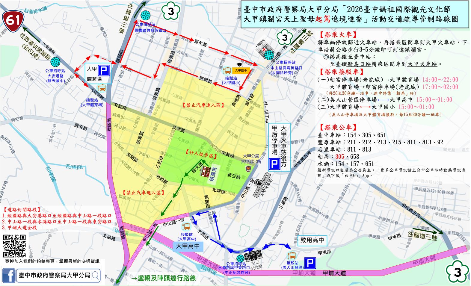 更新「2026臺中媽祖國際觀光文化節大甲鎮瀾宮天上聖母遶境進香」活動交通疏導管制公告